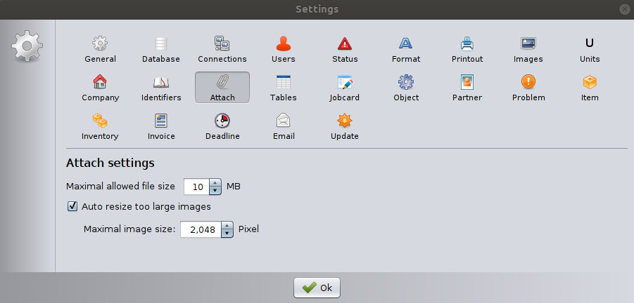 This opens the Attachement settings window.