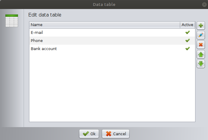 Each row represents a data field (for example: Name, E-mail, Phone, Bank account).