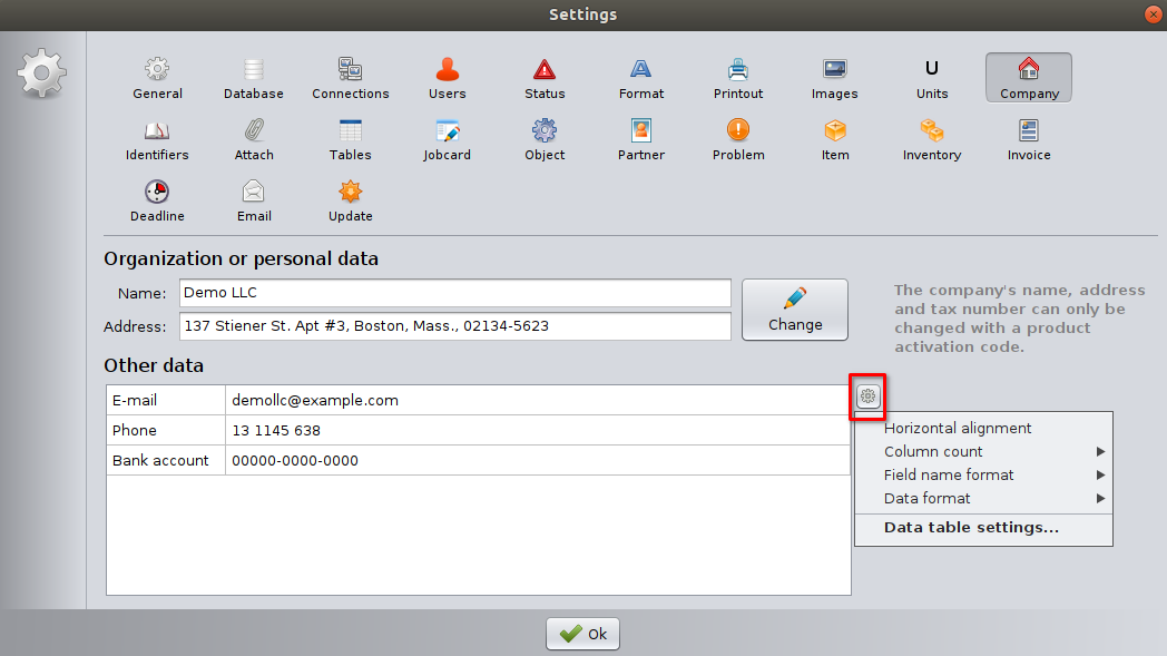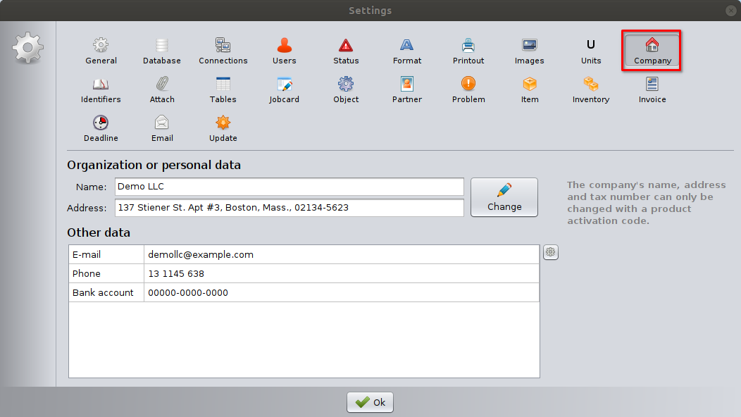 ⚠️ Important: The company name, address, and tax number can only be changed using a valid product activation code. This prevents unauthorized modification of licensed company data.
