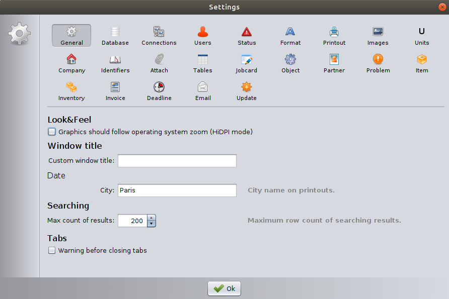 The General Settings section allows you to customize the basic appearance and behavior of the application. These options help adapt the software to your screen, workflow, and regional preferences.