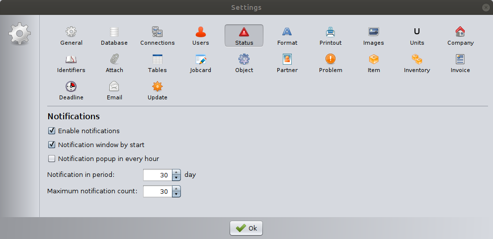 These settings control how and when the software notifies you about upcoming or overdue deadlines. Notifications help ensure that important tasks are not forgotten and that you can quickly open the related records directly from the alert.