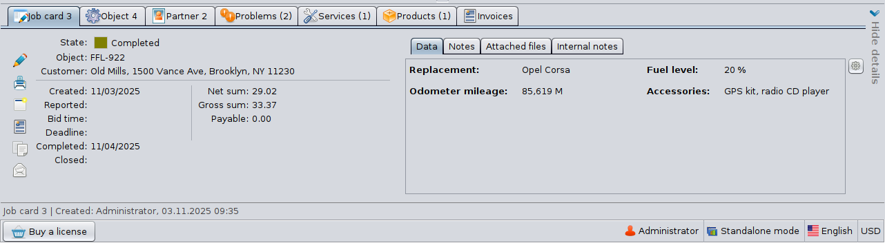 - Job cards