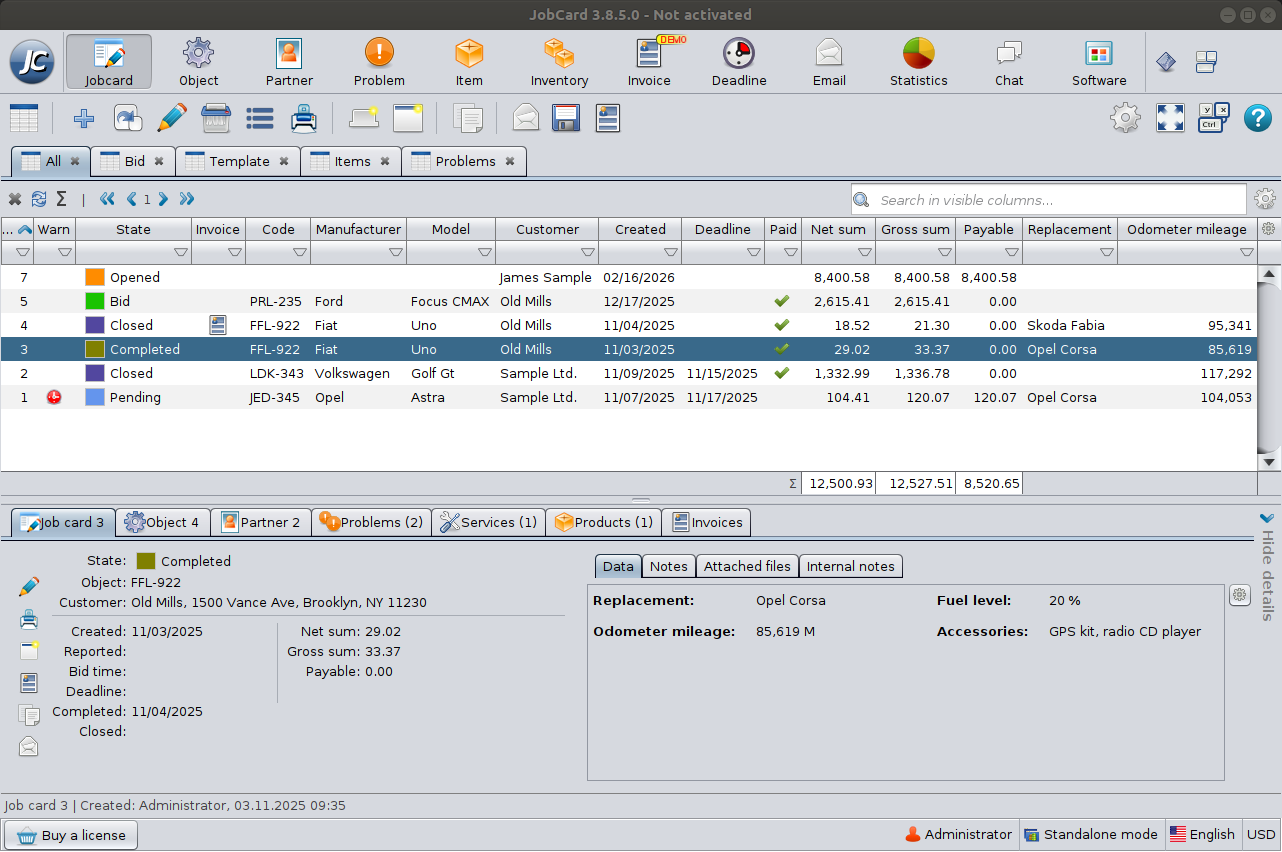 - Each row represents a record (e.g., a job card or customer).